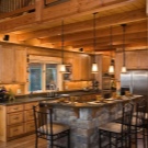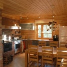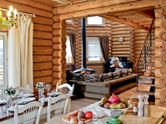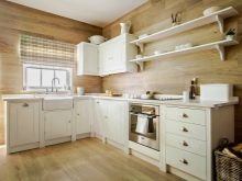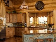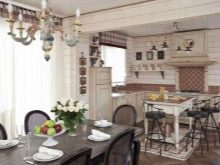 Кухненските гарнитури могат да бъдат масивни и изискани, мебелите в селски стил с причудливи извивки и къдрици ще пасват идеално. Голямата зона за готвене безпроблемно преминава в трапезарията с помощта на свързващ компонент – бар плота.