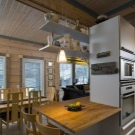 По-добре е да преместите кухненския бокс в ъгъла на къщата, като изберете вградени мебели и домакински уреди за него. Чудесна идея би била да добавите затворена веранда към къщата. Там можете да оборудвате пълноценна трапезария, където ще бъде удобно за цялото семейство да се събере. В самата кухня се грижете за малка трапезария, изберете сгъваема маса или островни шкафове, за да спестите място.