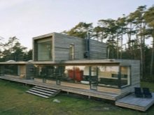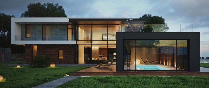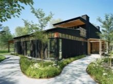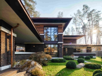 - Модерно: минимализъм, еко-стил, хай-тек. Тъй като всеки от тях включва панорамни прозорци, трябва да вземете предвид местоположението на околните къщи, за да запазите поверителността във вашата. Защо трябва да осигурите прозорци с по -малка площ или да “поставите” къщата дълбоко в територията, съответно голяма.