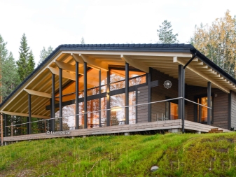 Настоящата вариация на екстериора от дърво. Характерно за финландците е да обшиват предната част на къщата с дървен материал, дъски или дъски и да използват минерална вата като изолация на стени.