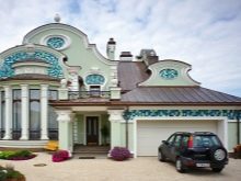 Независимо от това, във вилни селища можете да намерите много модерни къщи в претенциозни и претенциозни стари стилове, практични европейски-полуфабрикати, английски, белгийски или селски, както и с ултрамодерен екстериор от високотехнологични или модерни фасади. Нека се спрем на някои от тях.
