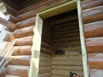 - Каква врата поставяте в отвора. По правило в къщи от дървени трупи те могат да бъдат метални, пластмасови и малко по -рядко стъклени платна. Следователно подготовката на корпуса може да има свои тънкости..