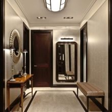 Една от основните задачи на огледалата в малките градски апартаменти е визуално да разширят пространството.. В тесен коридор поставете голям и широк огледален лист на стената и ако вратите на банята и тоалетната се отварят в коридора, тогава можете да помислите за използване на врати с огледални елементи.