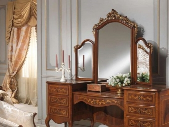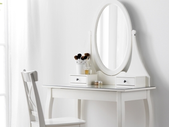 - размерът зависи от това, което е по -важно за вас – отражение или декоративност. Така че, много жени предпочитат да нанасят грим пред малко огледало на тоалетката, което е удобно да се доближи;