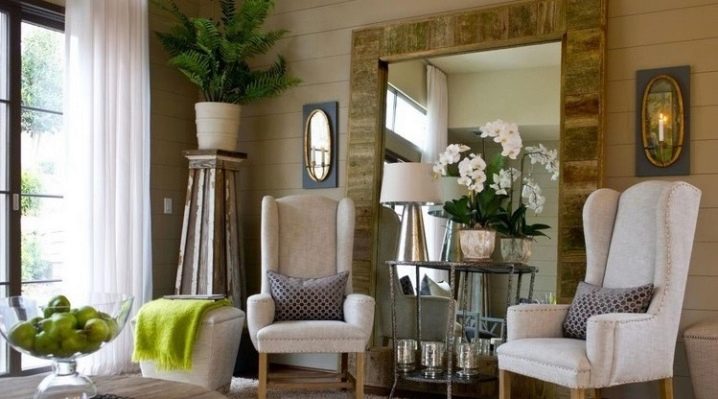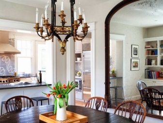 Дървото се комбинира с метални и стъклени интериорни елементи, така че класическата версия в обикновена дървена рамка може да присъства както в градски, така и в тавански стил. Такъв артикул ще добави топлина и комфорт в стая, пълна с хромиран блясък и блестящи гладки повърхности..