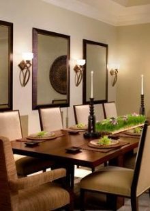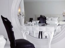 Можете да поставите тоалетка в спалнята, подово огледало на стойка в ъгъла на стаята. Огледалната декорация на стената в главата на леглото също е доста подходяща, особено ако стаята е малка. Малко огледало в спалнята може да се постави във вратите на гардероба. Ще бъде напълно достатъчно да се поставите в ред. Няма специални правила за огледала в хола. Основното е, че те съответстват на общия стил на стаята..