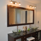 - размерът на огледалото, разположено в банята над мивката, обикновено е свързано с ширината му, а идеалното място предполага, че те са с еднаква ширина.