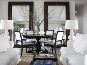 Ако в стаята има две или повече големи огледала, тогава тяхното местоположение трябва да бъде избрано според законите на симетрията: един срещу друг, в отвори между прозорци на същото разстояние, между арки или колони на същото разстояние и т.н. ..