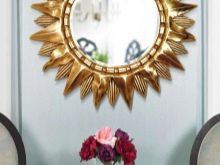Но за по -класически интериор подовите продукти с изящни рамки, както и във формата на слънце, са идеални. В този случай използвайте най -удобните и интересни винтидж волани и рамки. Те са осветени с красиви аплици и подови лампи. В допълнение, огледалата могат да украсят други, по -необичайни интериорни опции..
