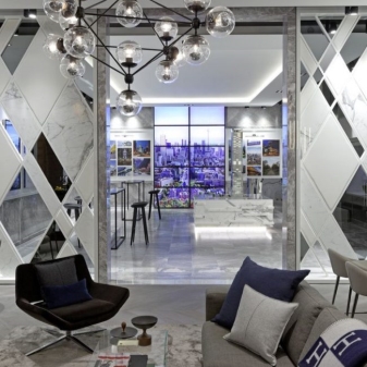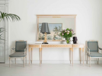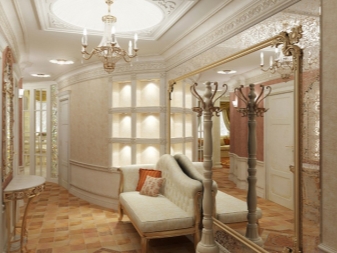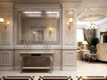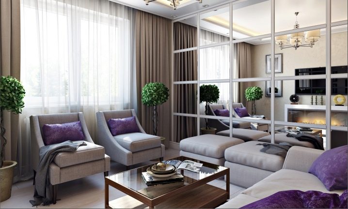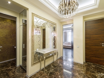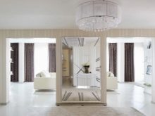 В хола можете да поставите огледала близо до масичката за кафе, защото този елемент от интериора може да се намери в почти всяка стая. Това е чудесна възможност да отразите аксесоарите и светлината от полилея. Така че всички светли акценти ще изглеждат хармонично и единно..