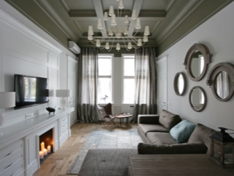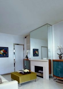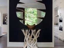 В хола огледала често се окачват над камината. Тази класическа подредба се дължи на древна традиция: преди това върху камината бяха поставени свещи, които бяха красиво отразени в огледалото. Така пламъците им се умножиха. Стаята беше изпълнена с мистериозна светлина. Това е чудесен вариант, който е подходящ за специални приеми и срещи с гости..