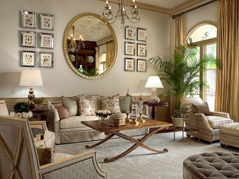 В интериора на класически хол често се използват луксозни модели в стара красива рамка или в багета. Тези ретро парчета изглеждат богати и изискани. Рамката действа като истинска декорация и затова може да се превърне в централна част на интериора..