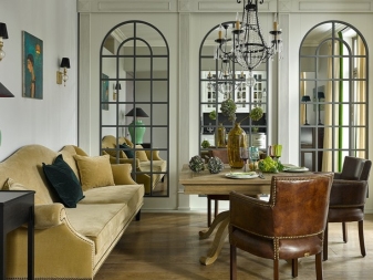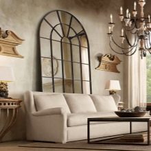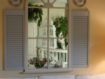 Така че, в интериора направено Френски или провански стил, можете да окачите фалшиво огледало за прозорци. Предлага се в класически бели или кафяви дървени рамки. Такова огледало може дори да бъде украсено с елегантни светлинни завеси..