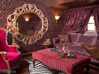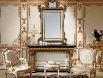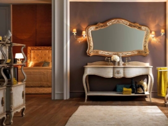 За по -артистични и луксозни стилове като барок, по -добре е да изберете метални модели с позлата. Класическите дървени огледала без излишен декор са идеални за апартаменти в етнически стил. Можете да изберете опция с елегантна резба.