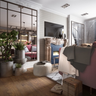 Огледалата в интериора често се използват като допълнителни прозорци и врати. По този начин можете красиво да разширите пространството и дори да направите цял огледален коридор..