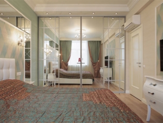 В спалнята почти всеки има огледала. Спецификата на тази стая се дължи на необходимостта от инсталиране на килер за спално бельо. Неговата роля често се играе от гардероб, който производителите допълват с огледала, монтирани в крилото на вратата. Така ще видите себе си в пълен растеж и лесно можете да съставите красиво изображение, приготвяйки се сутрин.