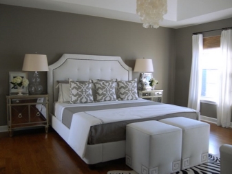 Огледала се монтират и близо до нощни шкафчета и скринове. Най -често стените са допълнително украсени със свещи и абажури. Така светлината ще се отрази красиво и ще създаде интимна атмосфера в спалнята. Това е особено вярно за топла слаба светлина..
