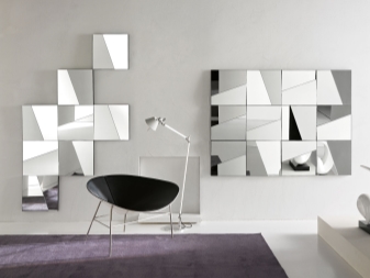 Не се страхувайте да направите красив обемен панел от огледала. Елементите също могат да бъдат насочени в различни посоки.