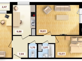Предимството на такива апартаменти е, че в едно от дневните има т. Нар. Складово помещение. Това е добре, защото обикновено има място за връхни дрехи. Достатъчно добър вариант да спестите пари и да откажете да купувате големи шкафове, които значително намаляват квадратурата и правят стаята по -малка.