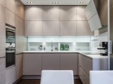 Традиционно в многостайни апартаменти размерът на кухнята е лош, така че правилното решение в тази ситуация ще бъде възстановяване на стаята, след което тя придобива U-образна форма.