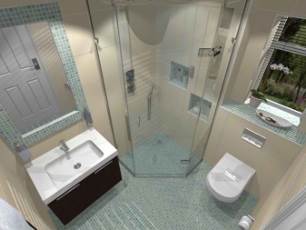 За компактно подреждане на водопровод и мебели, в такива бани се препоръчва да се монтира ъглова вана или малък душ..