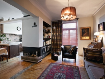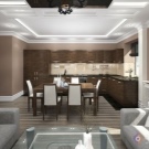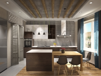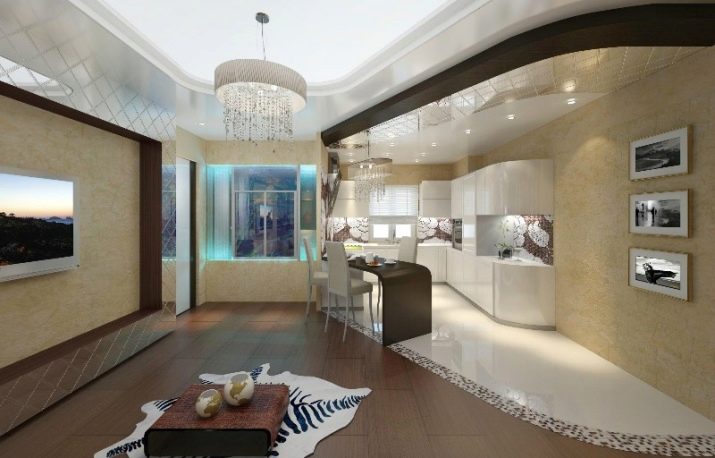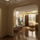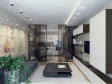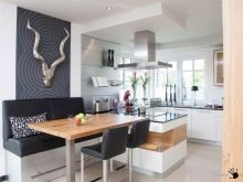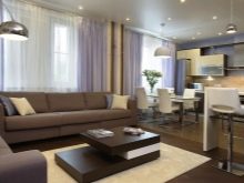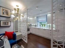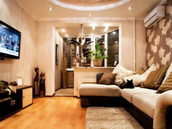 Напоследък дизайнерите препоръчват също комбиниране на кухни с хол. За това стената се разрушава и се монтира плъзгаща преграда или двойна врата. Подобна трансформация не само прави стаята уютна, но и разширява функционалността на стаята..