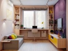 Обикновено тези стаи могат да бъдат разделени и на отделни зони. Така например една спалня ще бъде добре допълнена от кабинет. За да създадете комфортни условия за работа, трябва да инсталирате шарнирни конструкции в стаята, те ще спестят използваемо пространство и ще служат като отличен ъгъл за съхранение на неща.