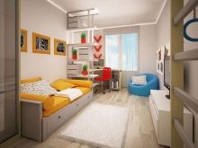 Същото важи и за детската стая, по подобен начин е възможно да се разпредели място за учене и почивка, докато работната зона е най -добре поставена до прозореца. Специалните детски кътчета, състоящи се от легло, гардероб и бюро, също изглеждат добре на закрито..