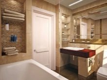 Можете също така да преместите вратата от кухнята и да разширите стаята. Ако комбинираната баня има голяма площ, няма да се налага да се правят промени в апартамента, висящите шкафове удобно ще бъдат поставени по стените, а бордюрите могат да бъдат допълнително украсени с красиви свещи и сапун.