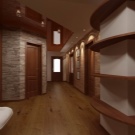 Добър вариант за коридора също ще бъде зонирането под формата на оригинални стени, тавани и подови настилки. Мецанинът също ще помогне за визуално разделяне на зоната на стаята..