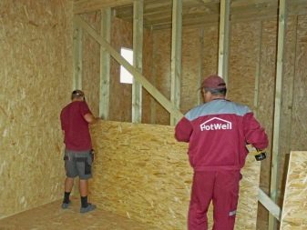 Вътрешната облицовка на стени на всяка рамкова конструкция започва с фиксиране на листове или плочки върху рамката – това е груб завършек. Обикновено, За него се използват OSB, ПДЧ, гипсокартон или шперплат, те просто се закрепват към рамката със самонарезни винтове. В тази операция няма нищо трудно. Най -важното е да поставите прецизно листовете, така че да прилягат плътно върху щайгата. Основната функция на грубото покритие е да образува равнините на стените, които по -късно ще бъдат облицовани с декоративни материали..