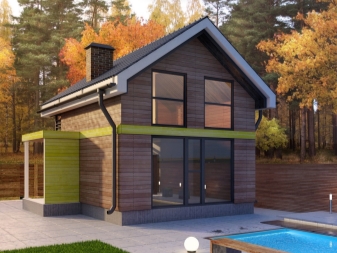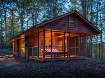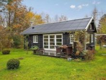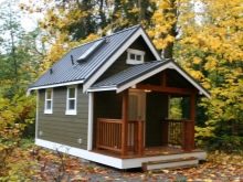 Ако сте поддръжник на екологични материали, тогава такава малка къща може да бъде построена от заоблени трупи – в този случай ще постигнете стилно решение и ниска цена.