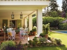 - Стилно декорирана веранда ще придаде на вилата ви оригинален вкус. Тук не можете да сдържате въображението си: контрастни нюанси, стилно осветление, оригинална камбана или копче за почукване на вратата, изобилие от зелени площи в необичайни саксии – всичко това ще накара минувачите да обърнат внимание повече от веднъж на къщата ви ..