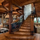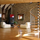 Наличието на необичайно стълбище ще направи залата на вашата селска вила уникална. Такъв дизайн може да се превърне в характеристика на вашия дом, основното е да изберете формата, която хармонично ще се впише във всеки проект.