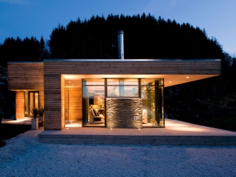 Необходимо е, според експерти, да се вземат предвид климатичните особености на територията. Най -често такива къщи се издигат от греди или същите заоблени трупи. Рамковите конструкции се използват по -рядко. Тухлените къщи са не по -малко популярни – те са надеждни и топли, строени „от векове“, имат висока звукоизолация и задържат топлината добре..