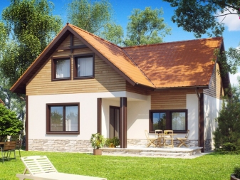 - Структурата на избраните от вас строителни материали. Има много от тях: плочки, тухли, алуминиев сайдинг, дърво и т.н. Всичко зависи от стила, който сте избрали. Можете спокойно да избирате между кедрови плочки или каменни облицовки, декоративна мазилка или фасадни плочки.