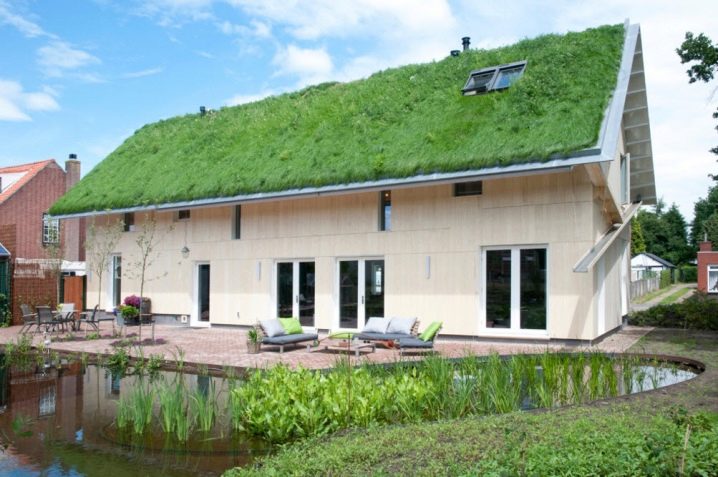 Например на поддръжниците на екологично чисти материали, които не се страхуват да експериментират, може да се предложи т. Нар. Обърнат покрив, когато вместо керемиди или шисти се използва тревна трева или цветя – такъв е необичайният зелен килим на покрива..