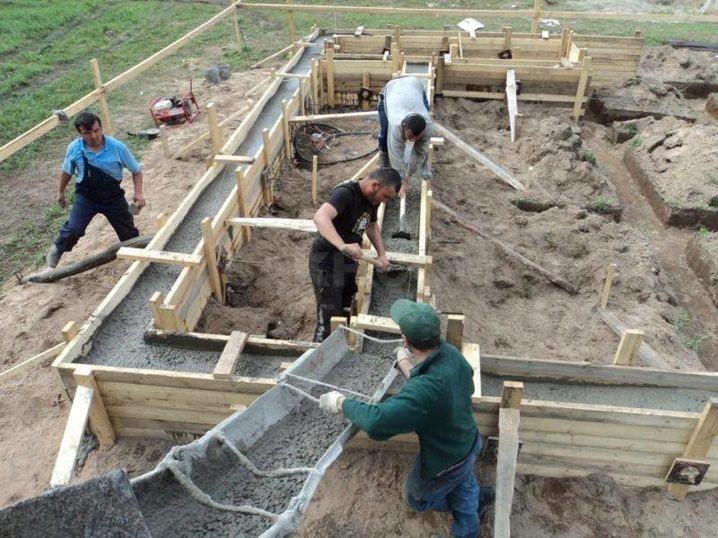 Изливането на бетон се извършва незабавно, ако се използва готова смес, или на слоеве, ако бетонът се приготвя самостоятелно.