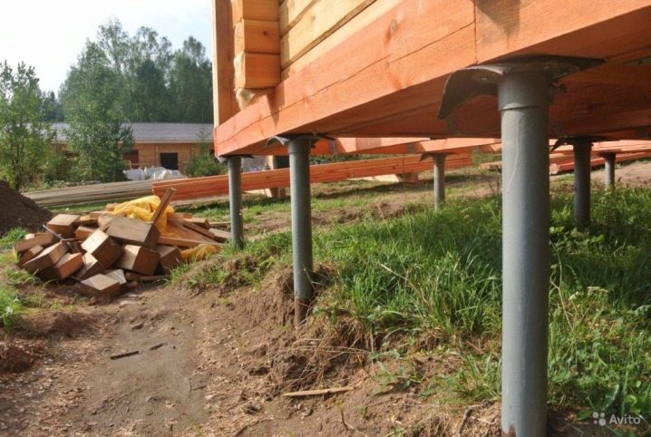 Ако говорим за дизайна на такава основа за рамкова къща, тогава тя се състои от опори, които са заровени на 1,5 метра в земята. Над нивото на почвата стълбовете трябва да се виждат на 50 см.