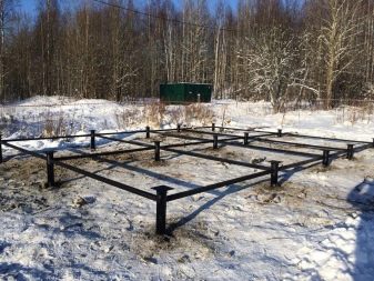 Такава основа може да бъде с обвързване на труп или бар.. Ако теглото на къщата е впечатляващо, тогава се използват метални греди или канал..