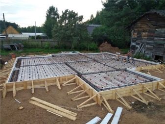 Ако почвата е от слаб тип, тогава за основната плоча се използва стоманобетонна рамка. Той разпределя товара върху наличната площ. Невъзможно е обаче да се организира мазето в такъв случай..