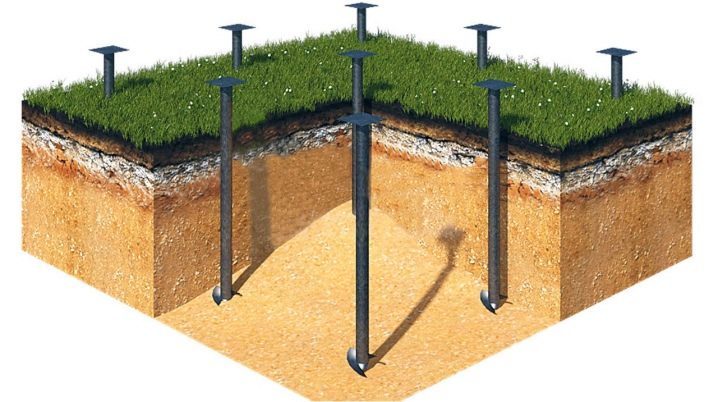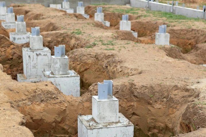Ако говорим за дизайна на такава основа за рамкова къща, тогава тя се състои от опори, които са заровени на 1,5 метра в земята. Над нивото на почвата стълбовете трябва да се виждат на 50 см.