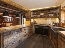 Други интериорни стилове за кухнята в дървена къща: