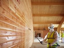 - Подът и стените трябва да бъдат импрегнирани със специални съединения с противозащитни свойства. Територията на камината или печката (ако има такава) е изолирана, облицована с камък.