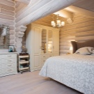 Най -традиционното решение е да украсите боядисаните стени.. В този случай акцентът обикновено е върху запазването на естествения цвят на дървото. Тогава е възможно да се запази най -естественият вкус. Във всеки случай е необходимо да украсите стените само след завършване на свиването. Изключително важно е да се поддържа топлоизолацията, включително проектирането на топлоизолация между етажите, в пода и на покрива, както и да се грижи за пароизолацията.