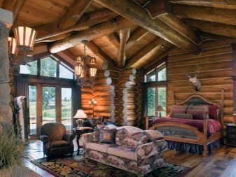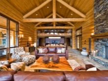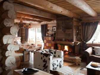 Подпорите (борови стълбове) помагат да се имитира такава структура. Носещите елементи на сградата трябва да бъдат направени от трупи с големи секции. Струва си да се има предвид, че през последните години стилът на хижата стана много по -разнообразен и гъвкав от преди. Не е обичайно да се боядисват подовете, обикновено те се ограничават до лакиране или дори нанасяне на петно. Основният елемент на хижата беше и остава камина..