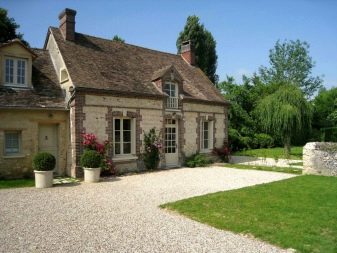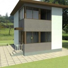 Едноетажните сгради могат да бъдат направени от газобетон или блокове от пяна. В този случай строителният материал трябва да бъде покрит с боя. Често фасадата е декорирана в светло сиви или млечни цветове, но отворите за прозорци и врати трябва да бъдат направени в по -тъмни цветове. Покривът може да е тъмнокафяв.