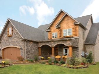 Можете също така красиво да украсите къщи на 2 етажа, изработени от блокове от газобетон или блокове от пяна. Освен това малка част от външната фасада трябва да бъде украсена с изкуствен декоративен камък. Понякога се използва и естествен материал. Жилищните сгради от червени тухли с кафяви плочки и кафяви дограми ще изглеждат красиви и спретнати..