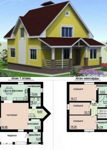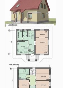 Проектите на къщи с един етаж и с таван са с голямо търсене. На долния етаж може да има хол или хол-трапезария, кухненска стая и комбинирана баня. Таванското помещение често е организирано като едно голямо пространство. Допустимо е също така да се раздели на отделни зони с помощта на прегради. Там можете да направите няколко отделни зони за спане или детска стая с игра.