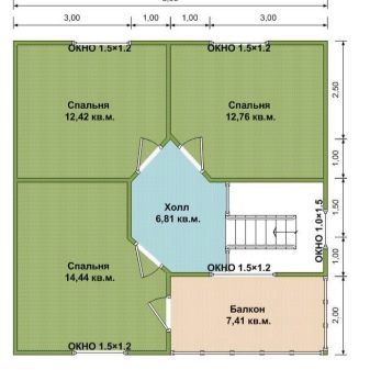 Къщи с този размер могат да бъдат подходящи както за постоянно пребиваване, така и за сезонни ваканционни вили.. Най -често в такива сгради се монтират обемни прозорци, за да се направи пространството визуално голямо..